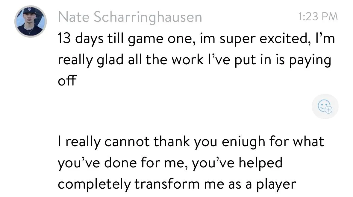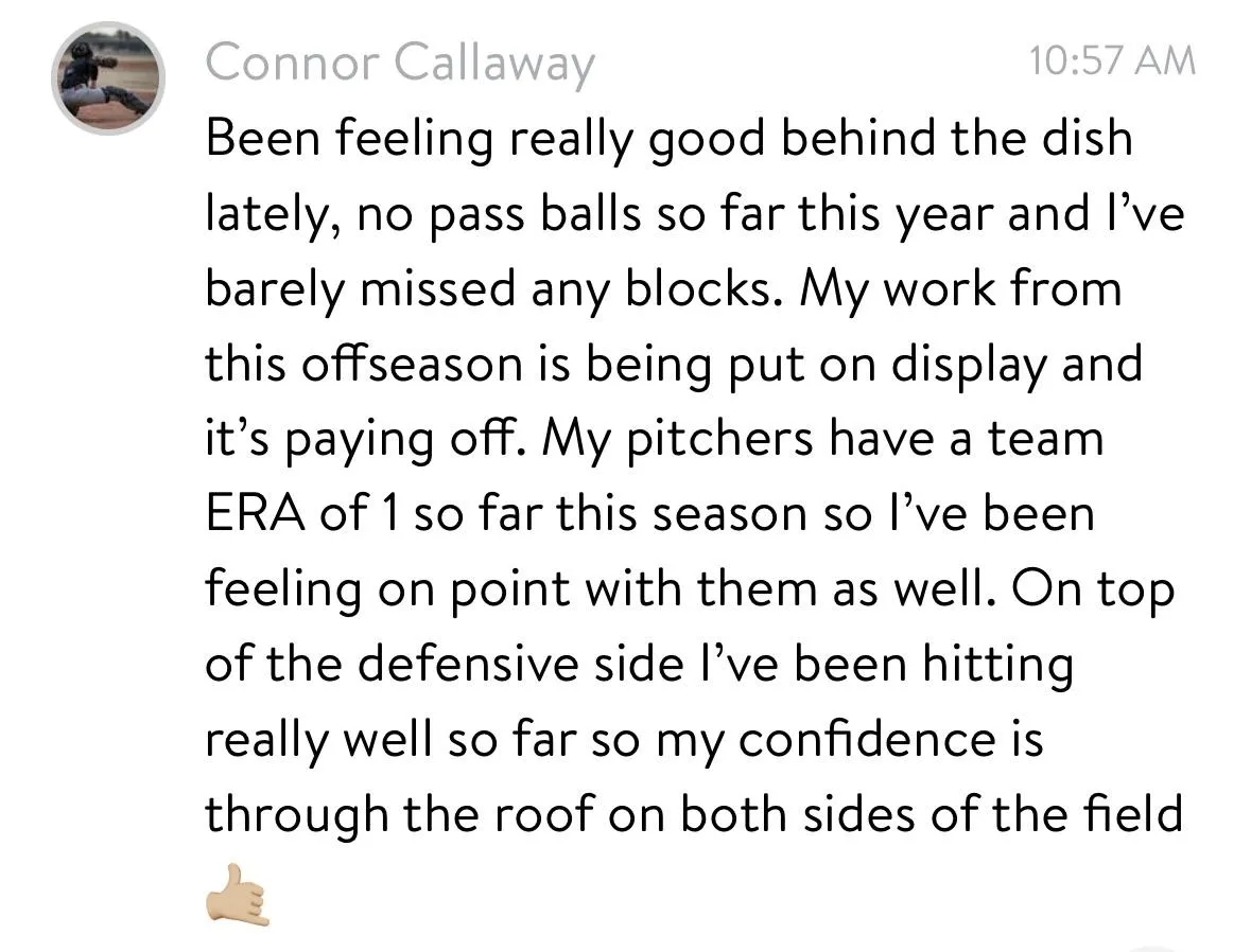 Absolutely! The program focuses on mechanics and fundamentals, so it fits easily into your in-season routine. You can use me for in-game video analysis and feedback after each game to keep improving. Don't wait—being the best version of yourself behind the dish is a continuous journey, and consistency is key to a great season.