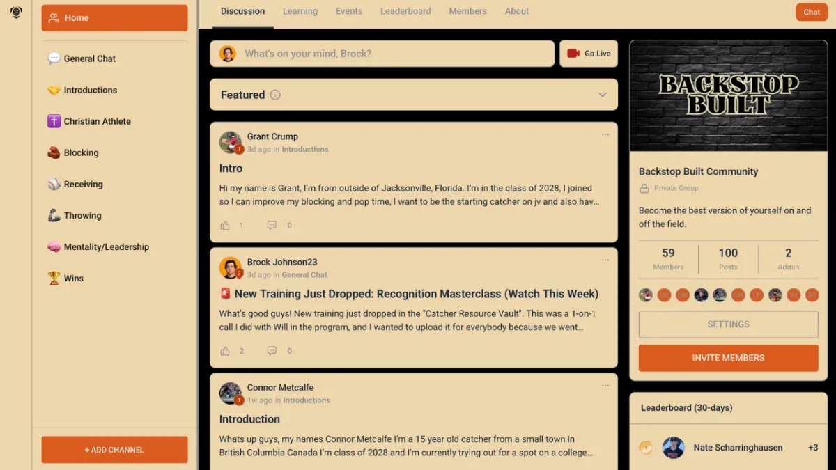 Backstop Built is a fully remote catching development program. All training, evaluations, and communication happen through our online platform, including personalized video feedback and direct access to Brock for ongoing support.